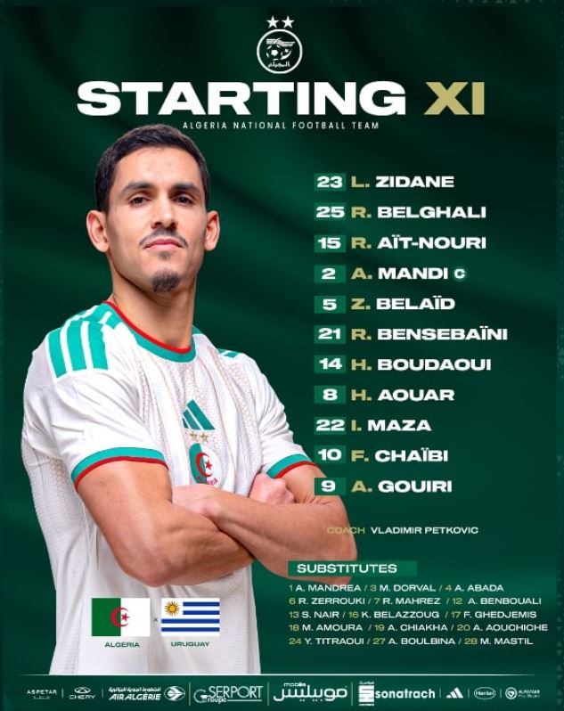 ستّة استبدالات جزائرية أمام الأوروغواي