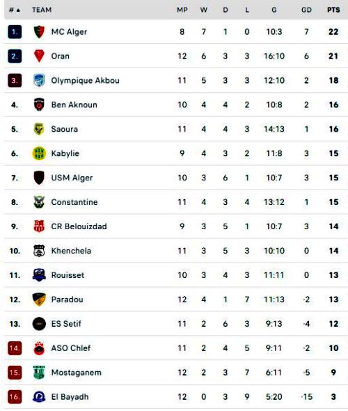 وبقيت مولودية الجزائر في الصدارة بِرصيد 22 نقطة، متقدّمة عن الوصيف فريق مولودية وهران بِفارق نقطة واحدة، الذي حرمه “النسر الأسود” من الاستئثار بِكرسي الريادة.