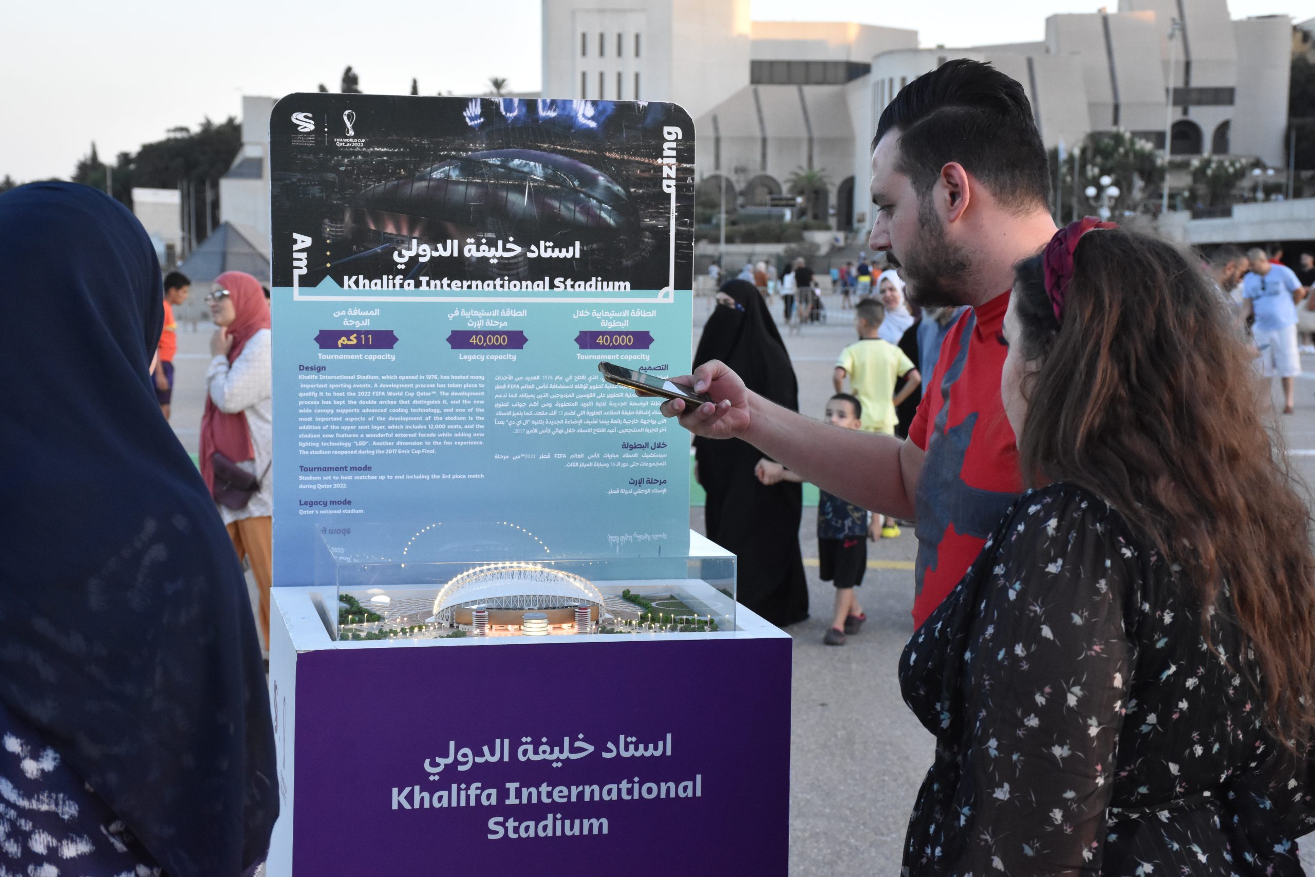 وعرف المعرض المونديالي الترويجي أيضا نصب شاشة عملاقة، أول أمس، لنقل مباراة “سوبر لوسيل”، التي جمعت بين ناديي الهلال السعودي والزمالك المصري، وانتهت بفوز الهلال بلقب “السوبر” بركلات الترجيح (4-1) بعد انتهاء المباراة بالتعادل الإيجابي (1-1)، إيذانا بالافتتاح الرسمي لملعب لوسيل الذي سيحتضن نهائي كأس العالم 2022، وهو المصنف كأكبر ملعب في البطولة وبطاقة استيعابية تلامس الـ80 ألف مشجع، فضلا عن توفره على فنادق من فئة 5 نجوم على سقف الملعب (تفرّد غير مسبوق) سيتم افتتاحها بعد المونديال، في خطة جدواها اقتصادية للكثير من المنشآت المونديالية، التي سيتم استغلال الكثير منها في مهام أخرى لها فوائد اقتصادية واجتماعية ورياضية.