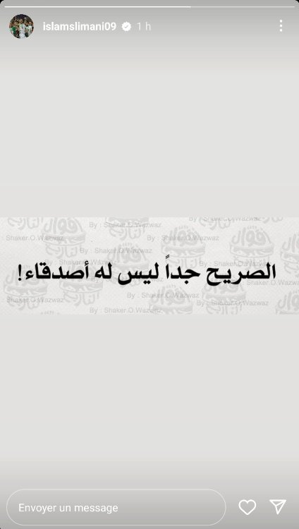 وكتب إسلام سليماني مهاجم فريق براست الفرنسي: “الصّريح جدّا ليس له أصدقاء”.