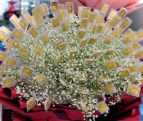 بمناسبة يوم المرأة العالمي، طلب رجل في فيتنام باقة زهور مصنوعة من “قطع ذهبية”، تزيد قيمتها عن 7 مليارات دونج فيتنامي (307 آلاف دولار أمريكي) ، من أجل “قريبته”.