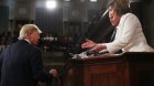 ورغم أنها لم تتحدث إلى ترامب منذ اجتماعهما الأخير، بدا عليها أنها بوغتت. وتجنبت قول العبارات المعتاد أن يستخدمها رئيس المجلس لدى تقديم رئيس البلاد إلى الكونغرس مثل “يسعدني ويشرفني أن أقدم إليكم”.