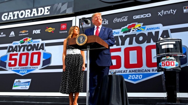 وفي تعزيز لجهوده على مستوى الولايات المتحدة لإعادة انتخابه بعد تبرئته في محاكمته في مجلس الشيوخ الأمريكي، قام ترامب وبجانبه السيدة الأولى ميلانيا بدور رئيس السباق الذي يجري في ولاية فلوريدا وهي من الولايات غير المحسومة في عام الانتخابات.