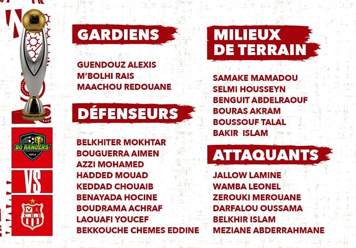 ووجّه التقني البلجيكي سفين فاندربروك مدرب فريق شباب بلوزداد الدّعوة إلى 24 لاعبا، يتقدّمهم الحارس الدولي رايس وهّاب مبولحي.