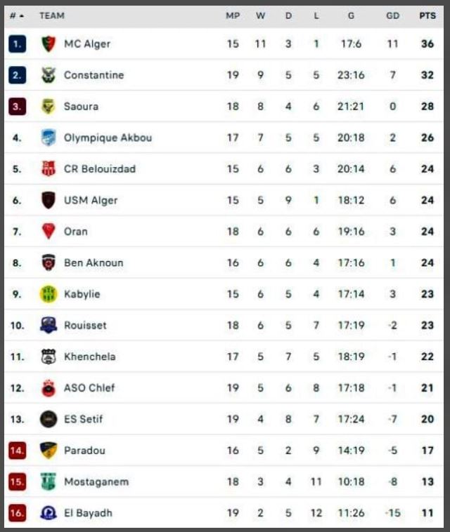 وتشكّلت لائحة الترتيب على النّحو التالي: