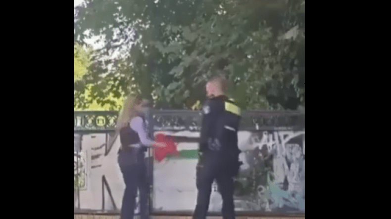 قامت شرطية ألمانية بطمس علم فلسطين عبر رشّه بطلاء أحمر على جدارية في العاصمة برلين، وهو ما أثار ردود فعل غاضبة بين مستخدمي مواقع التواصل.
