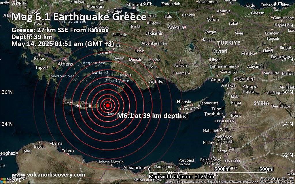 شعر به سكان 5 دول عربية.. زلزال قوي يضرب اليونان