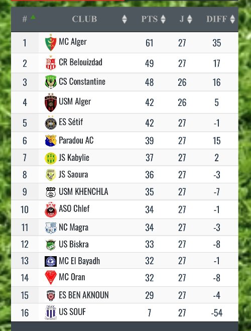 وتجمّد اتحاد العاصمة في الرّتبة الـ 4 بِرصيد 42 نقطة، فيما رفع نجم بن عكنون غلّته إلى 29 نقطة في المركز الـ 15 وقبل الأخير.