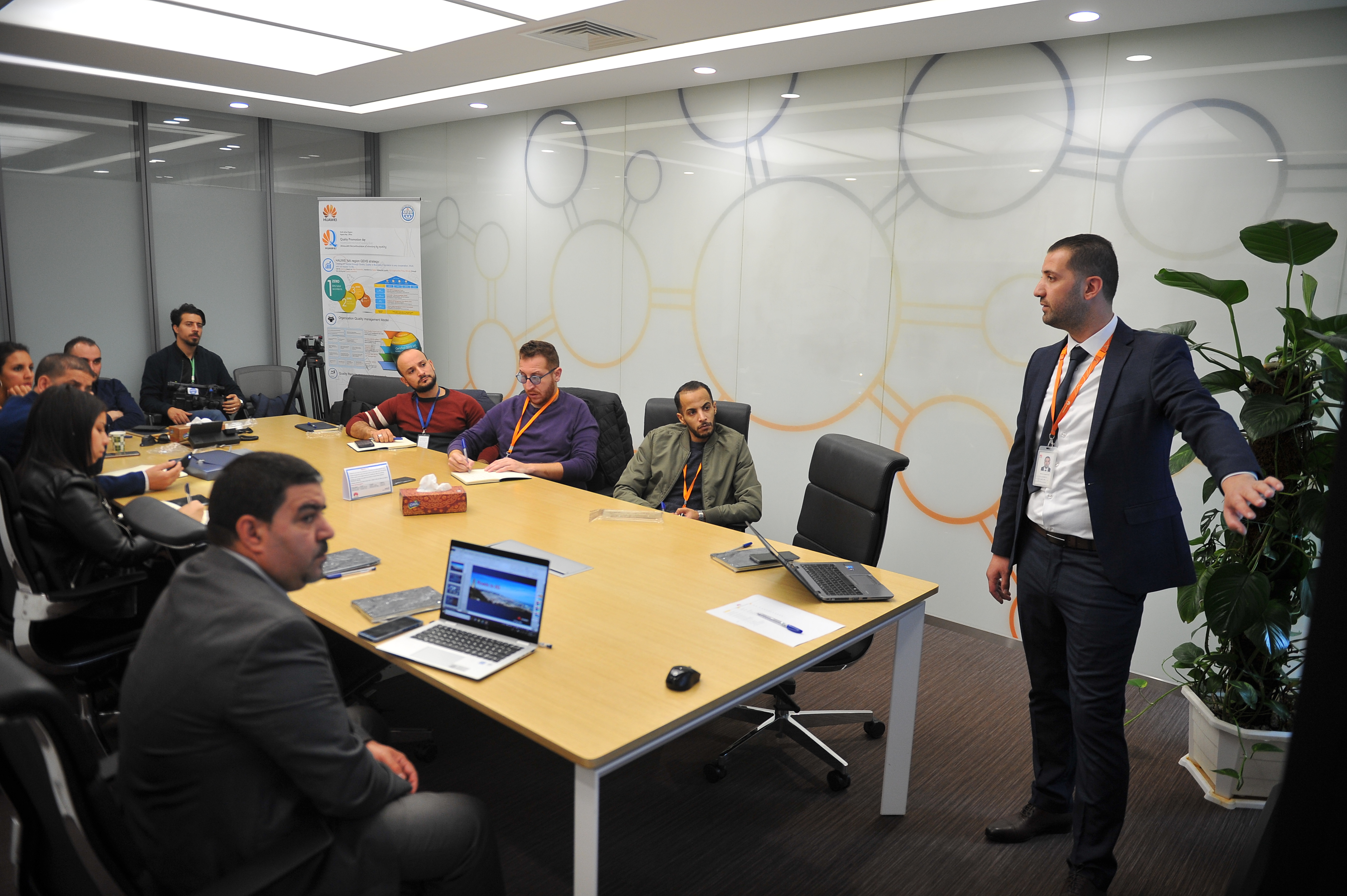 من جانبه، أمير بلهادي، مدير الجودة في شركة هواوي الجزائر للاتصالات، قام بتقديم مركز عمليات هواوي، هذا المركز يسمح بالتنفيذ الصحيح للمهام وجودة الخدمة المقدمة للعملاء.