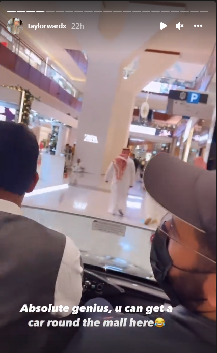 وظهر محرز في أحد المقاطع التي نشرتها خطيبته عبر ستوري حسابها الرسمي على إنستغرام يركب سيارة صغيرة، داخل أحد المولات التجارية بمدينة دبي الإماراتية.