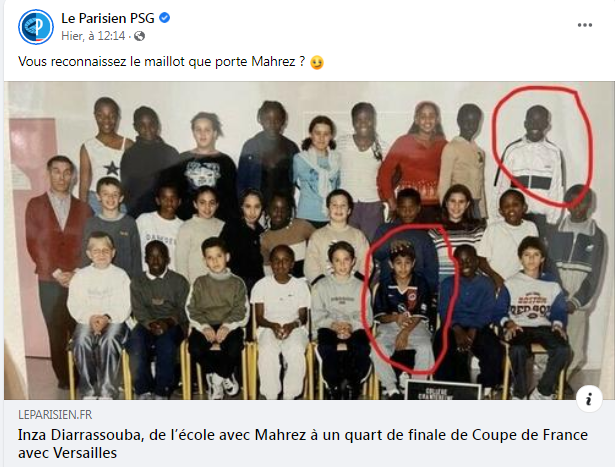 وأوضح الموقع أن مصدر الصورة هو اللاعب إنزا ديارسوبا، والذي كان زميلا لمحرز في الملعب والمدرسة ووصل رفقته إلى ربع نهائي كأس فرنسا في ذلك الوقت مع فرساي.
