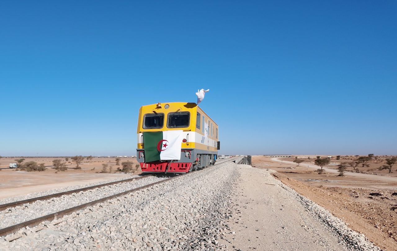 انطلاق التجربة التقنية الأولى للخط المنجمي الغربي للسكة الحديدية بشار -تندوف-غار جبيلات، 6 جانفي 2026.