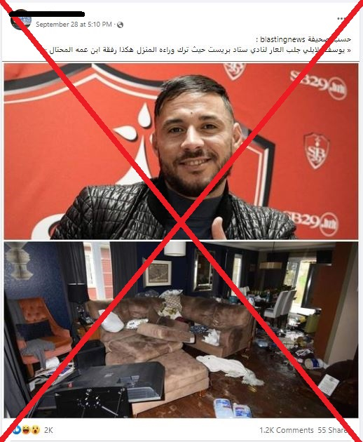 قبل إعلان نادي بريست الفرنسي فسخ عقد مهاجمه الجزائري الدولي يوسف بلايلي، انتشرت على مواقع التواصل صورة ادعى ناشروها أنها لمنزله وقد تركه بحالة مزرية. فما حقيقة ذلك؟