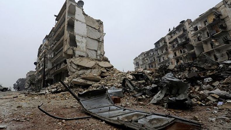 مشهد عام لمباني مدمرة في حي الشعار الذي سيطرت عليه قوات النظام السوري في حلب - 13 ديسمبر 2016