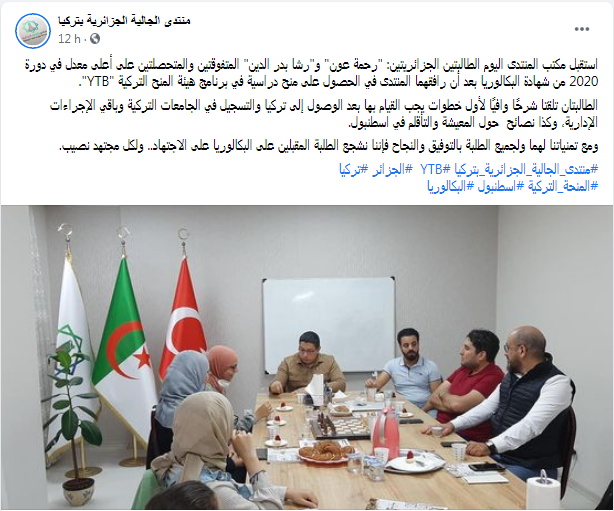 تحصلت طالبتان جزائريتان متفوقتان في بكالوريا 2020 على منحة للدراسة في تركيا، بمساعدة منتدى الجالية الجزائرية هناك.