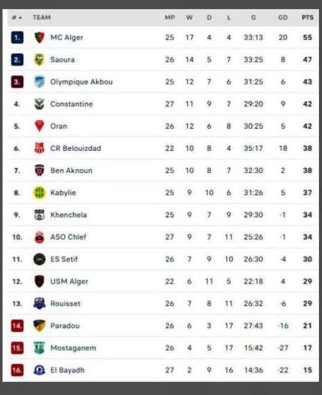 وعزّزت شبيبة الساورة مركز الوصافة إثر فوزها على الزائر اتحاد خنشلة، فيما انتفض نادي البارادو بعد 12 مباراة بِلا انتصار، وفاز خارج القواعد على فريق مولودية البيّض، ولكن مع ذلك قد يُرافق مضّيفه وأيضا ترجي مستغانم إلى القسم الثاني.
