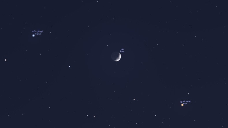 ووفقا للمركز ففي بداية السهرة بعد غروب الشمس ليوم الأحد الفاتح جوان، على الساعة الثامنة والنصف ليلاً بالتوقيت المحلي، سيتمكن عشاق السماء من المشاهدة بالعين المجردة في اتجاه الغرب لتقارب وثيق للقمر وكوكب المريخ والنجم قلب الأسد لكوكبة الأسد على ارتفاع 50 درجة من الأفق.