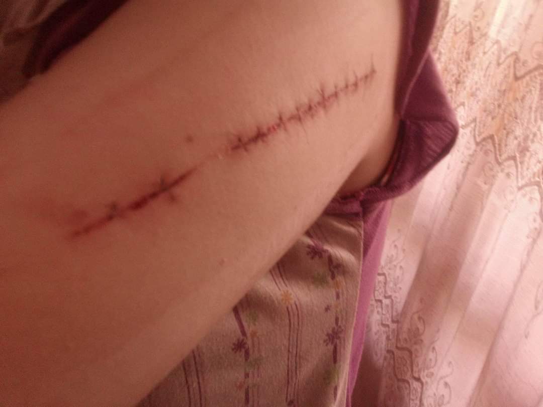ووضعت عبير صورا مقربة للجرح الناجم عن الاعتداء وقالت: “في نظر أشباه الرجال والنساء عديمو الأخلاق والشرف مسرحية ودراما”.