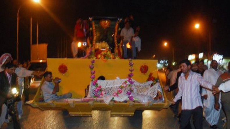 قرر عروسان مصريان الاحتفال بليلة العمر بطريقة مختلفة وغريبة،فبدلاً من أن يستقلا سيارة فاخرة،استبدلاها بجرافة “لودر” ضخمة زُينت بالورود والأضواء،في مشهد طريف استقطب العديد من المارة الذين قاموا بالتقاط صور ومقاطع فيديو للزفة.