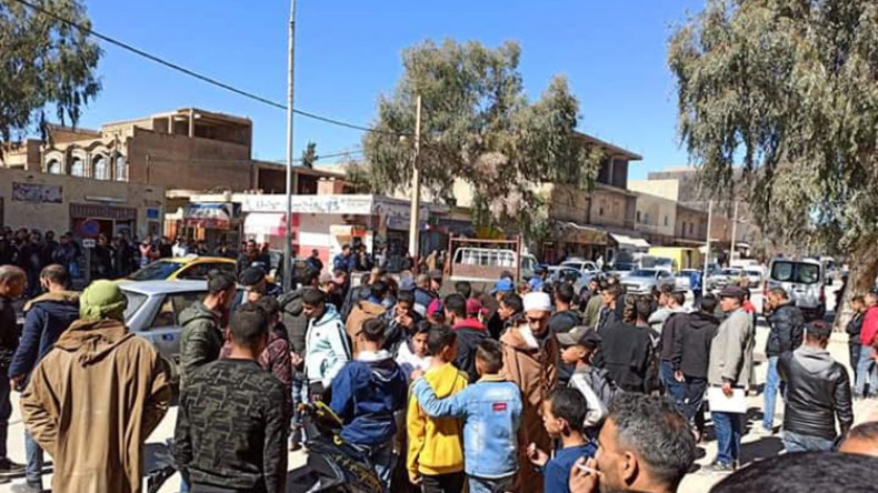 عشرات المواطنين والتجار يحتجون ويغلقون الطريق بحاسي بحبح بالجلفة