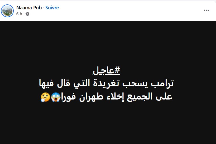 ورجح البعض أن تكون تدوينة ترامب مجرد رد مماثل للتحذير الذي نشره الحرس الثوري الإيراني لسكان تل أبيب والذي جاء فيه: “ننصحك بمغادرة هذه المدينة فورا من أجل سلامتك وأمنك وعدم العودة إليها أبدا”.