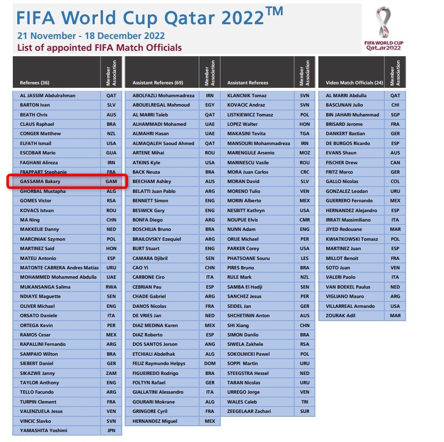 فاسم الحكم الغامبيّ لا يزال موجوداً ضمن القائمة الرسميّة لحكّام المونديال التي نشرها الاتحاد الدوليّ لكرة القدم في موقعه الرسميّ.