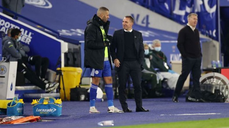 وتُظهر الصورة المُدرجة أعلاه التقني بريندان رودجرز مدرب فريق ليستر سيتي، يستعدّ للزجّ بِالمهاجم سليماني في مواجهة الزّائر نادي أستون فيلا.