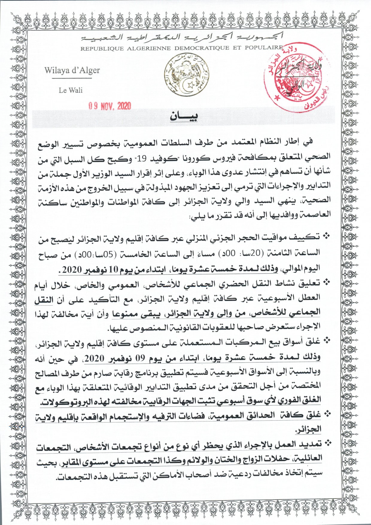 ولاية الجزائر تعلن عن عدة قرارات لمواجهة كورونا: