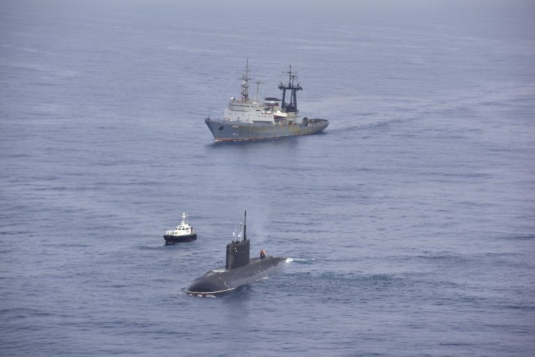 غواصة وقاطرة بحرية من الأسطول العسكري الروسي ترسو في ميناء الجزائر