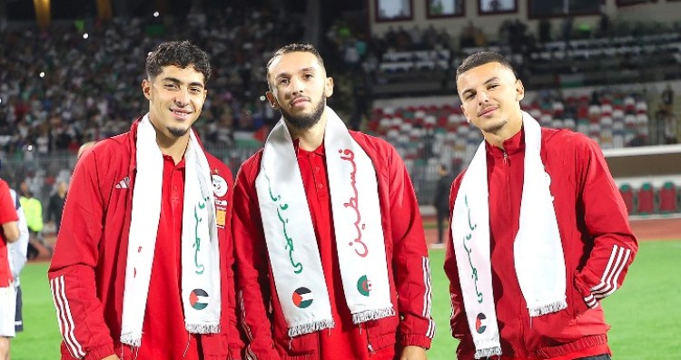 ولا نغفل أيضا أن لاعبي المنتخب الوطني دخلوا إلى أرضية ملعب “محمد حملاوي” بِقسنطينة، وهم يحملون وشاحا يرمز إلى التضامن مع القضية الفلسطينية العادلة، التي يُعاني شعبها البريء جرائم المُحتلّ الصّهيوني (الصورة المُدرجة أدناه).