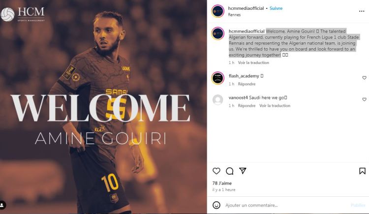 وكتبت “آش سي آم سبورتس مناجمانت” عبر منصة التواصل الاجتماعي “إنستغرام” مساء الجمعة: “مرحبا بك أمين غويري. ينضم إلينا المهاجم الجزائري الموهوب، الذي يلعب حاليا في نادي ران في البطولة الفرنسية للقسم الأول. ويمثل المنتخب الجزائري. نحن سعداء بانضمامك إلينا، ونتطلّع إلى رحلة مثيرة معا”.
