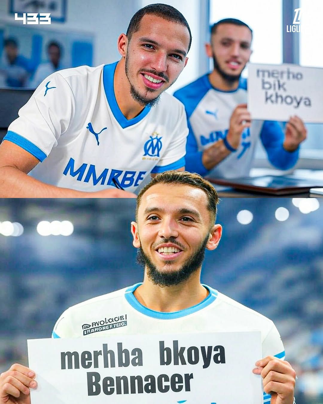 ونشر أمين غويري المنضم حديثا إلى نادي مرسيليا صورة ورفع لافتة كتب عليها: “مرحبا بيك خويا”.