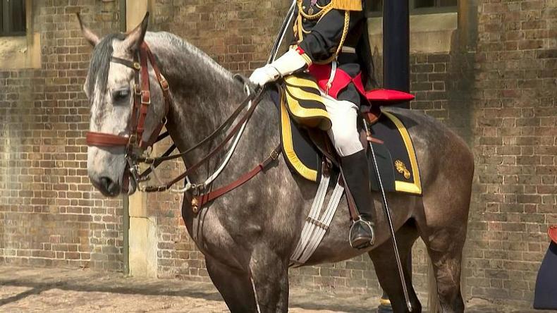 وأفادت وكالة “فرانس برس” أن الحصان فابولو دي موكور، قبله اللورد روبرت دي مولي، نيابة عن الملكة داخل قلعة وندسور.
