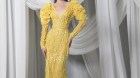 من الألوان الضاربة في عمق الموضة “الذهبي، فهو ورغم لمعانه سيزيدك بريقا. إختاريه بقصة عروس البحر وأكمام منفوخة ليكون أكثر دراما مثل تصميم طوني ورد الهوت كوتور.