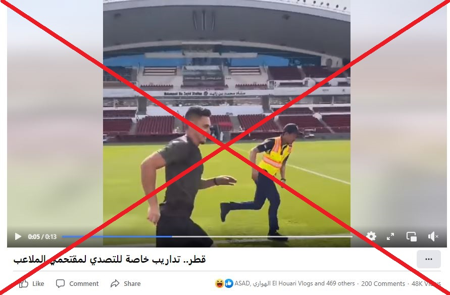 وجاء في التعليق المرافق “قطر… تدريبات خاصة للتصدي لمقتحمي الملاعب”، حاصداً عشرات المشاركات والتعليقات على فيسبوك.