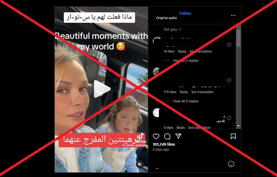 وبحسب تقرير حول صحة الأخبار نشرته وكالة فرانس برس فإن الادعاء غير صحيح، والفيديو منشور قبل بدء الحرب في السابع من أكتوبر وهو في الحقيقة لناشطة متعاطفة مع الفلسطينيين تنشر مقاطع على تطبيق تيك توك من بينها مقاطع تُظهرها وهي تردد آيات قرآنية.