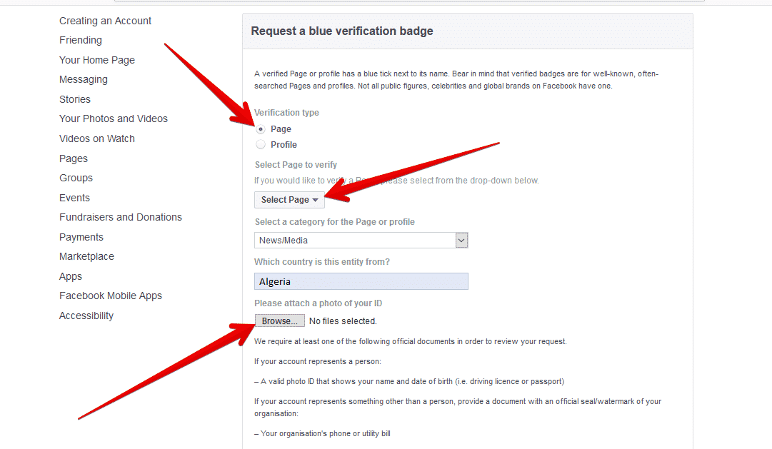 إذا كانت صفحتك الشخصية أو صفحة نشاطك التجاري تفي بالمعايير السابقة؛ فيمكنك تقديم طلب لفيسبوك لتوثيقها من خلال هذه الخطوات: