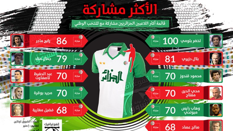 قائمة أكثر اللاعبين الجزائريين مشاركة مع المنتخب الوطني