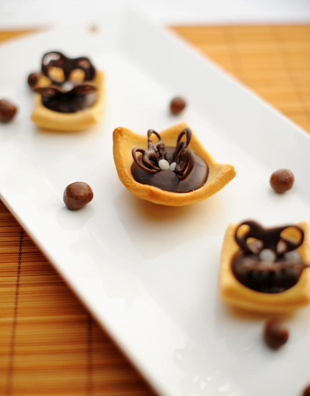 نضع الحليب في قدر صغير على نار هادئة حتى يسخن ثم نضيف الشكولاطة و القشدة و الزبدة و ننزعها من النارو نخلطها ، بعدها نضع خليط الشكولاطة على التارتات و نزينها حسب الرغبة ثم نضعها في الثلاجة تبرد و نقدمها.