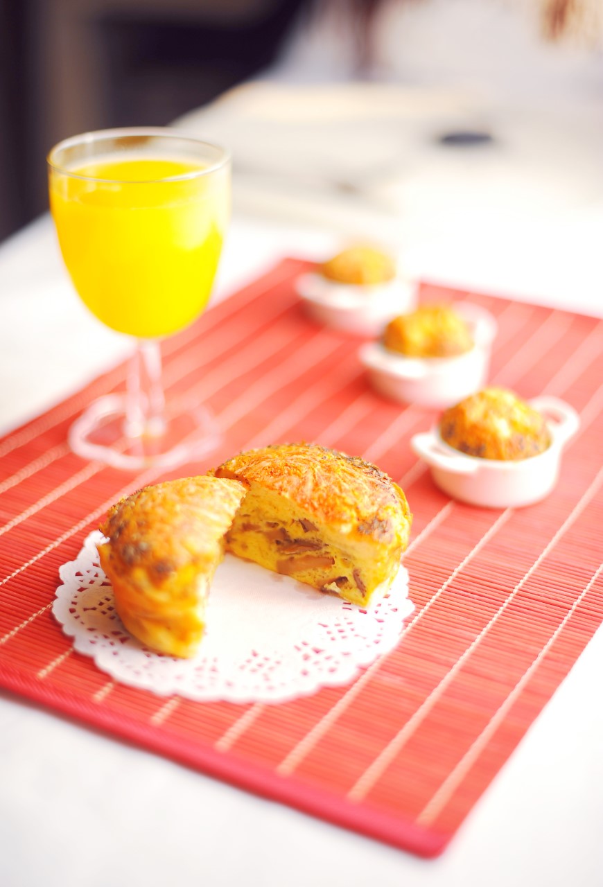 في وعاء نخلط صفار البيض مع الزبدة الذائبة و نضيف الحليب و الفرينة و الخميرة و نضيف الفطر الذي قمنا بتقليته مع البصل ، نضيف الملح و الفلفل الأسود و نضيف الجبن المبشور ، نخلط جميع المقادير ثم نضيف بياض البيض و نخلط بمهل ، نضع الخليط في قوالب و تزين بالجبن و الأعشاب و توضع في فرن لتطهى على درجة 180 مدة 25 د.