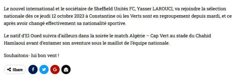 ووجبت الإشارة إلى أنّنا نقلنا ما حرّره كاتب بيان اتحاد الكرة الجزائري (المصدر)، الذي استعمل لفظ “يُتابع” وليس “يُشارك”، أو عبارة “بلماضي يستنجد بِلعروسي تعويضا لِغياب آيت نوري” (طالع المنشور الأوّل المُفرنس أدناه).