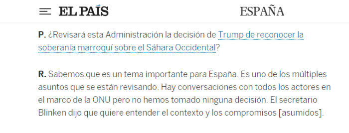يُشار إلى أن الأراضي المحتلة في الصحراء الغربية تخضع للسلطة الإدارية لإسبانيا، كما يعتبر حل هذه القضية مهماً لمدريد.