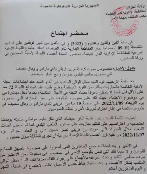 قرار يهمّ أنصار نادي البارادو ووفاق سطيف