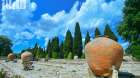 في الحديقة يتم الانتقال بين النباتات شبه المتوسطية والصحراوية بطريقة جذابة والزائر للقصر والحديقة، يلاحظ مكانة المجمع المعماري والمنتزه والنصب التذكاري للفن البستاني والحدائقي للنواة التاريخية والمناظر الطبيعية في عهد الملكة الرومانية والموجود على ضفاف الساحل البحري ؛ حيث مدرجات الحدائق والمصممة بأسلوب هندسي في مزيج من الميزات المائية والشلالات التي تربط الحدائق فيما بينها بالممرات والسلالم ومحصنة من قِبل جدران الأنفاق التي شيدت من الحجر الأحمر.
