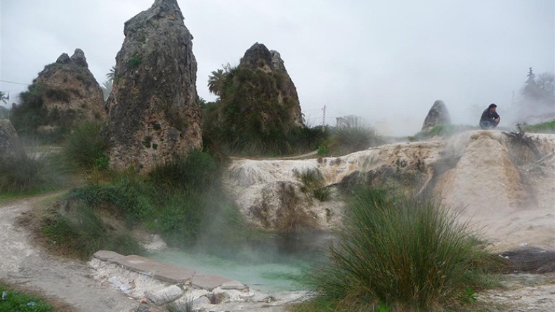 على بعد كيلومترات من مدينة ڤالمة، تستقبلك قصور كلسية من نحت الطبيعة، شلالات متحجرة من العهد النيوندرتالي، في جوفها مياه ملتهبة، تبلغ درجتها تسعين درجة، تضخ بكميات هائلة.. أما عمق هذه الينابيع الحارة، فيصل إلى عشرة كيلومترات في الباطن. ويعد بعد براكين أيسلندة، ثاني أسخن منبع جوفي في العالم… وراجت شهرة حمام الدباغ، أو حمام الشلالة، منذ قديم الزمان، وكان يقصده المرضى من جميع أنحاء الجزائر، لعلاج أمراضهم المضنية، من مفاصل متعبة وشرايين واهنة وجلد متساقط.