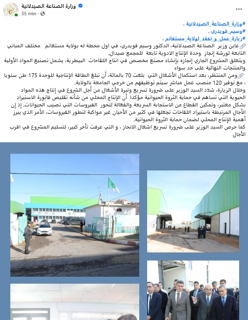 أكد وزير الصناعة الصيدلانية، وسيم قويدري، خلال زيارته لمجمع صيدال ببلدية مزغران في ولاية مستغانم، إعادة بعث المشروع الاستراتيجي لإنتاج المواد البيطرية والمنتجات الصيدلانية بعد توقف غير مقبول، مع العمل بنظام 3×8 لتسريع وتيرة الإنجاز، تمهيدًا لبدء الإنتاج خلال الأسابيع المقبلة.