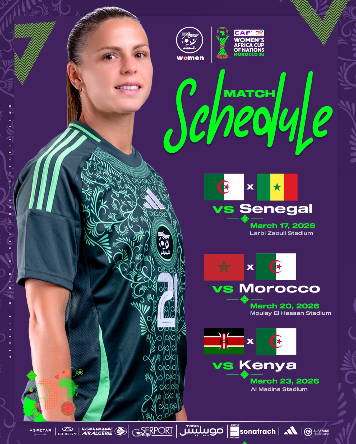 كشف الاتحاد الإفريقي لكرة القدم عن برنامج المنتخب الجزائري للسيدات في الدور الأول من كأس أمم إفريقيا 2026 .