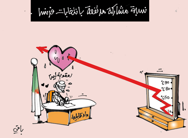 رغم أن بوادر المقاطعة أصبحت واضحة جدا لكننا غدا سنندهش من نسبة المشاركة كما حدث في الانتخابات السابقة حيث أجبر القائمون عبيها بالتزوير من الوالي حتى العمال الذين يقومون بالفرز تحت تهديد وزير الداخلية ......فما الفائدة من المشاركة شاركنا مزورة لم نشارك مزورة