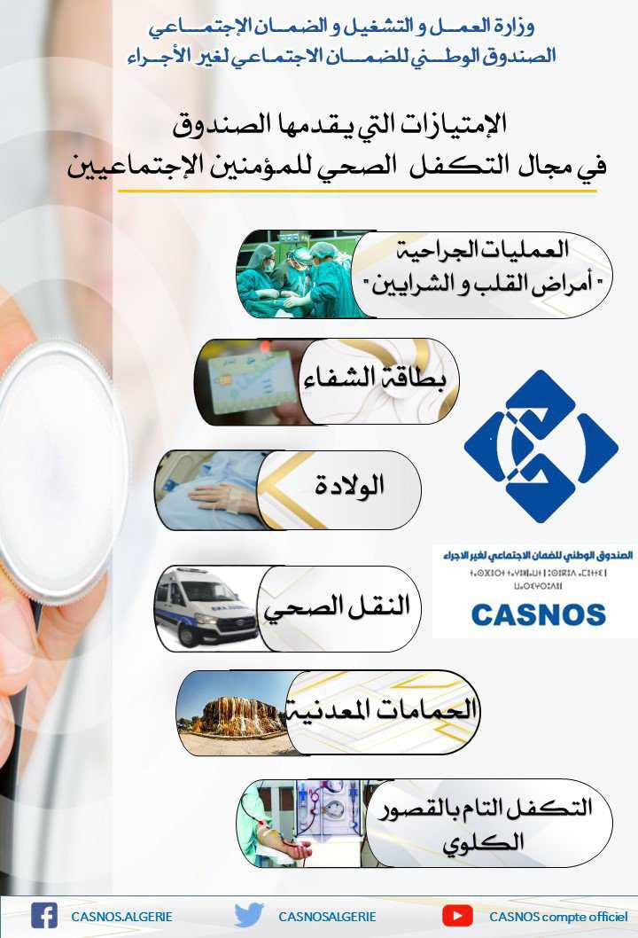 وحسب منشور للصندوق، تشمل هذه الامتيازات التكفل بالعمليات الجراحية، وخاصة في مجال أمراض القلب والشرايين، إلى جانب تغطية تكاليف الولادة، مما يخفف من الأعباء المالية على المؤمنين الاجتماعيين.