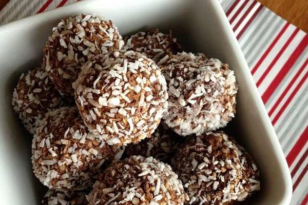 – اخرجي الكرات من الشوكولاطة وضعيها في جوز الهند لتتغطى جيدا.
